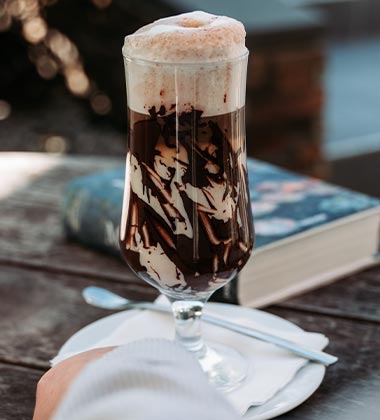 Chocolate caliente. Jugo de Naranja natural y orgánico.